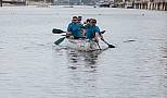 Sanft fallen die ersten Sonnenstrahlen auf die spiegelglatte Wasseroberfläche am Karlsruher Rheinufer. Plötzlich erklingt rhythmisches Plätschern von Paddeln, begleitet vom konzentrierten Atmen der Kanuten. Die Rheinbrüder sind beim Training.