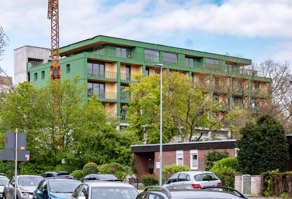 In unmittelbarer Nähe des alten Flugplatzes steht eine innovative Wohnanlage in Holzbauweise, genannt »Nord Grün«. Da es für das bestehende Gebäude in der Stresemannstraße keine Statik gab, beschloss Jungunternehmer und Bauherr Lukas Hechinger kurzerhand, über das vorhandene Gebäude eine Stahlkonstruktion zu bauen, ähnlich wie ein Tisch. Auf diesem sind in Holzbauweise 21 Mietwohnungen mit viel Charme entstanden. Nachhaltigkeit spielt für den Bauherrn eine große Rolle: »So haben wir ohne Flächenverbrauch und Neuversiegelung neuen Wohnraum in Karlsruhe geschaffen. Die Holzbauweise hat zahlreiche Vorteile: Neben einer schnellen Bauzeit und deutlich reduziertem Gewicht ist die ganze Konstruktion im Prinzip rückbaubar, da sie fast nur aus Holz und Stahl besteht.« Für die Holzwände und -decken wird ausschließlich Fichtenholz mit internationalem Siegel für nachhaltige Forstwirtschaft aus dem Schwarzwald verwendet.