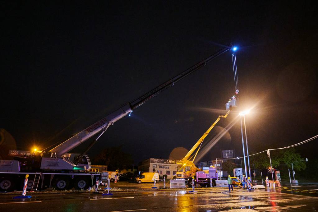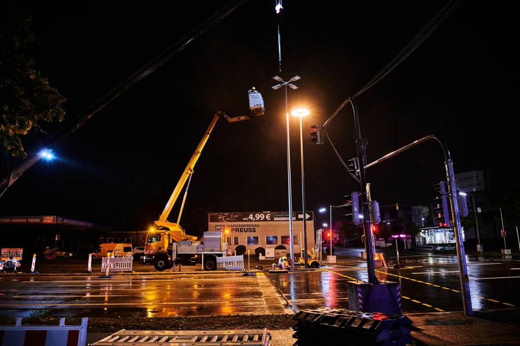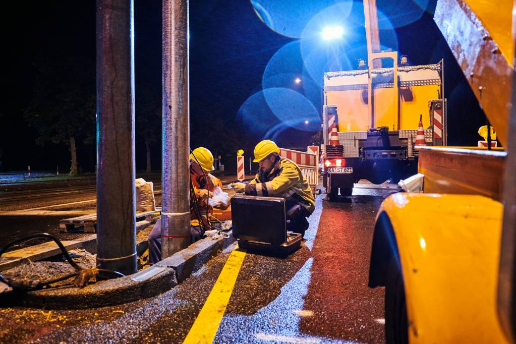 Die große Herausforderung, führt Uwe Heumöller aus, ist die ganz unterschiedliche Taktung der verschiedenen Aufgaben. So haben große Projekte wie beispielsweise die Erschließung eines neuen Wohngebiets lange Vorlaufzeiten. Sein Kollege Marco Müller ergänzt: »Wir kümmern uns aber auch um die ganze Infrastruktur, die mit der Beleuchtung zu tun hat, um die Kabelschächte und die Verlegung der Kabel zum Beispiel – alles, was im Erdreich stattfindet. Deshalb sind wir nicht nur bei Großprojekten dabei, sondern fast bei jeder Baustelle in Karlsruhe. Da kann es um einen privaten Hausbau gehen oder um den Abbau einer Freileitung oder um so genannte koordinierte Baustellen mit den städtischen Institutionen.« Der stellvertretende Abteilungsleiter Straßenbeleuchtung führt aus, warum das Planen manchmal nicht so einfach ist: »Baustellen sind komplexe Systeme, bei denen vieles gleichzeitig passiert. Da bleiben uns zumeist nur sehr enge Zeitfenster, unsere Arbeit zu machen. Bei der Kombi-Lösung zum Beispiel sind wir jedes Mal gefragt, die provisorische Beleuchtung zu errichten, wenn die Straßenführung geändert wird.«