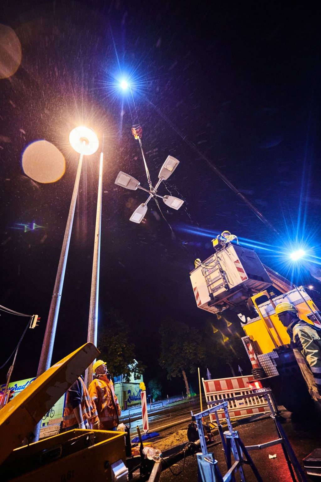 Dass es in der Abteilung Straßenbeleuchtung um Licht geht, verrät ja schon ihr Name. Das beinhaltet nicht nur die sichtbare Infrastruktur – nämlich die Leuchten selbst – sondern auch unsichtbare Leistungen: Die Stadtwerker bieten Planung, Projektierung, Bau und Bauüberwachung sowie Instandhaltung und Instandsetzung von Beleuchtungsanlagen. Die Mitarbeitenden verteilen sich grob gesagt auf ein kleines Planungsteam sowie ein Team, das sich um Entstörung und Instandhaltung kümmert, und je ein Tief- und ein Hochbau- Team.