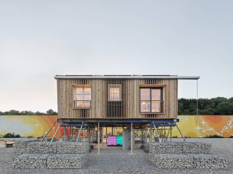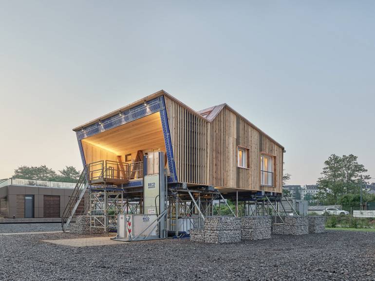 Etwa 100 Studierende, mehr als zwei Jahre und ziemlich starke Nerven – das alles brauchte es, um beim Wettbewerb Solar Decathlon Europe 21/22 mit dem Projekt RoofKIT an den Start zu gehen. Ein langer Weg, ein überzeugendes Ergebnis: Mit ihrer Idee der Sanierung und Aufstockung eines bestehenden Gebäudes, dem Café ADA in Wuppertal, holt das Team des Karlsruher Instituts für Technologie (KIT) den ersten Platz.