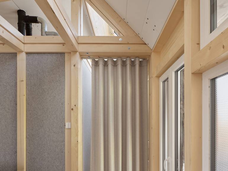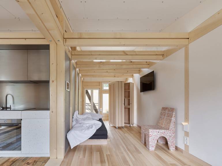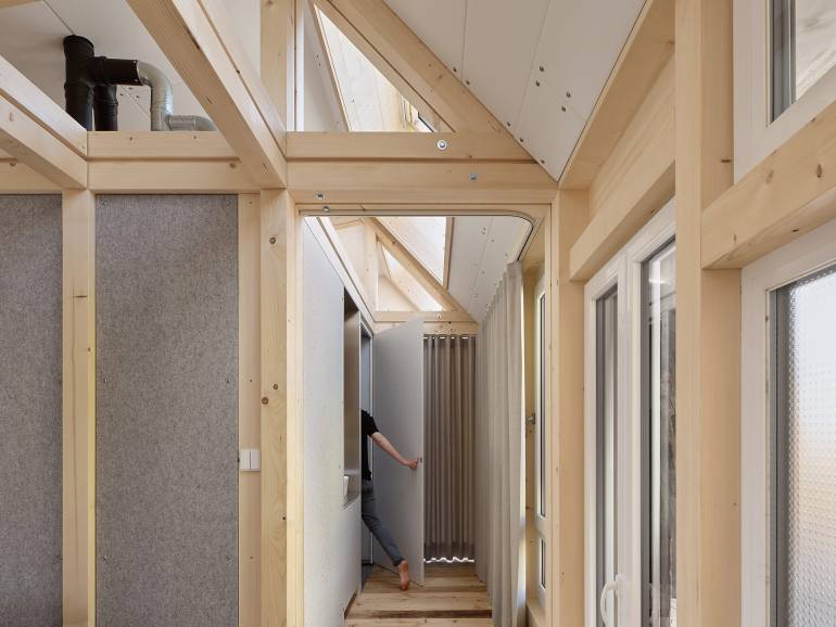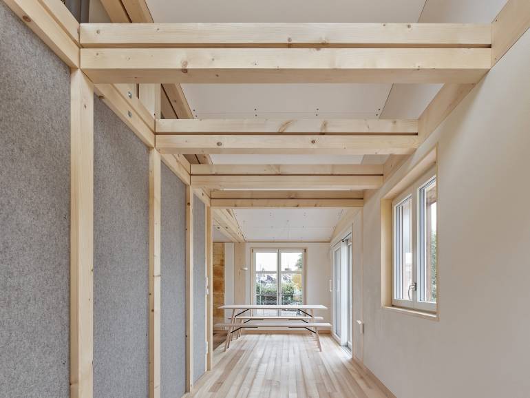 Mit unserer wissenschaftlichen Arbeit und prototypischen Umsetzung möchten wir erstmal Anstöße für das zukünftige Bauen geben. Es geht uns ja auch darum zu beweisen, was in der Gegenwart schon möglich ist, zum Beispiel beim umfassenden Einsatz kreislaufgerechter Werkstoffe und Bauweisen. Da spricht das Gebäude ganz für sich. Unsere Städte haben ein riesiges Potenzial für Aufstockungen zum Schaffen von neuem Wohnraum – für das letztendliche Konzept spielt jedoch immer der Kontext eine entscheidende Rolle.