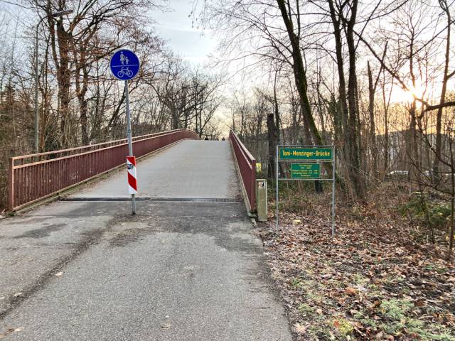 Am Ende der Erzbergerstraße in Richtung Norden beginnt der Weißdornweg, eine wichtige Verkehrsader von Rad-